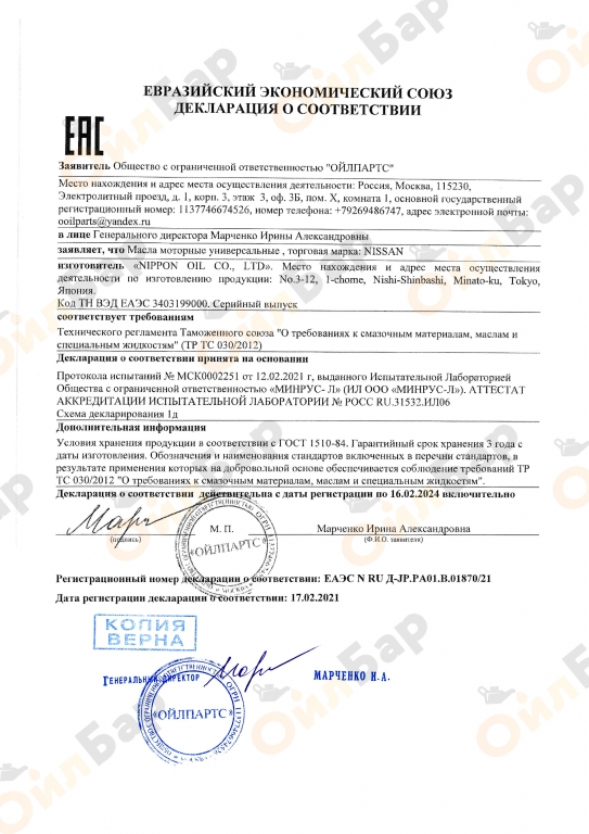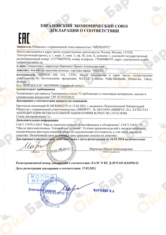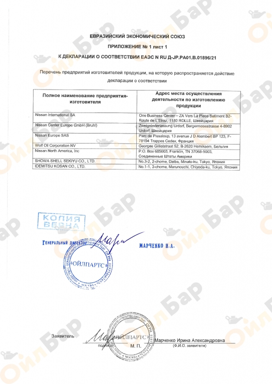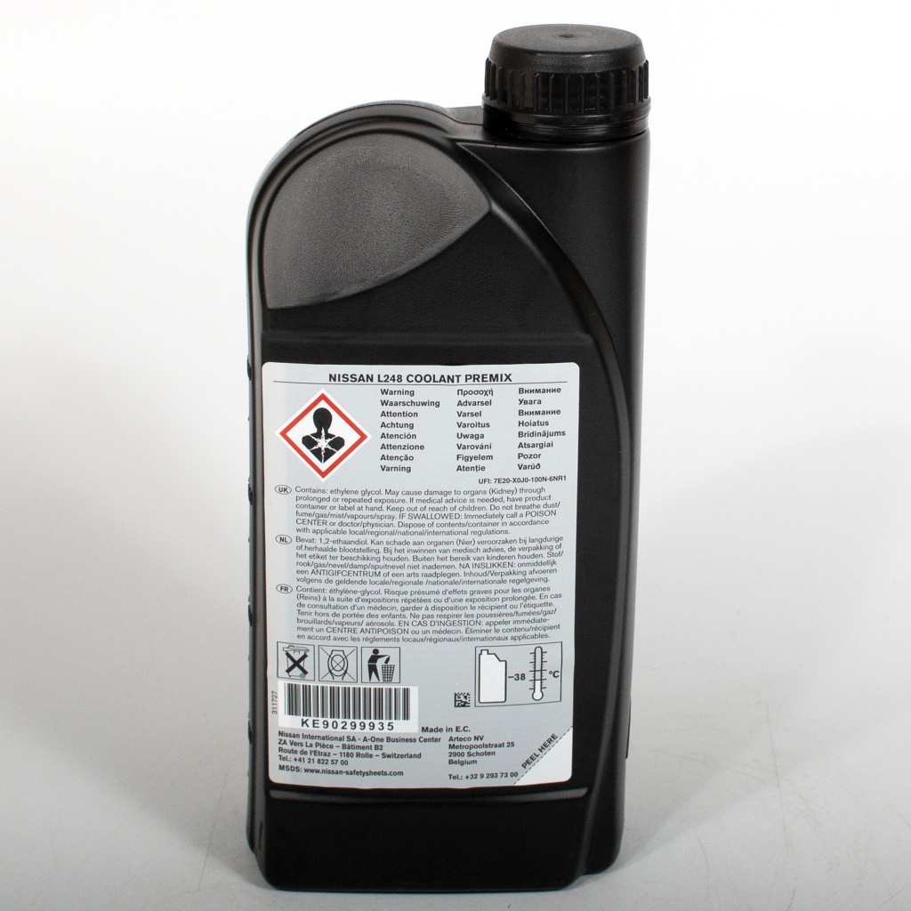 NISSAN Long Life Coolant L248 изготовлен на основе этиленгликоля и не содержит в своем составе этилового спирта• предотвращает коррозию, утечки и выкипание• является полным аналогом антифриза Nissan L248 изготовлен в соответствии с международными стандартами.
